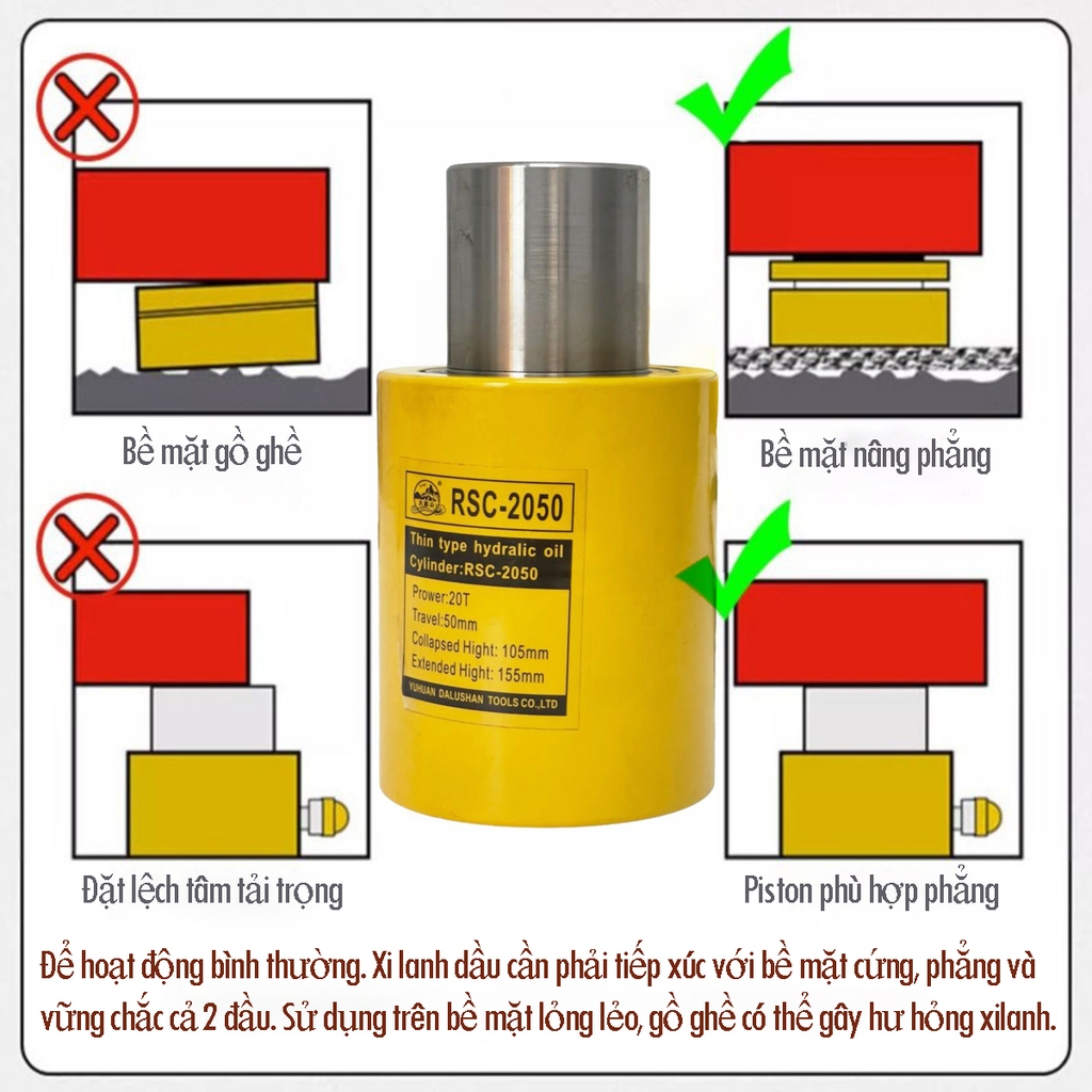 Kích nâng hạ thủy lực 20 tấn RSC-2050 là dòng kích 1 chiều, được sử dụng rộng rãi trong các công trình xây dựng lớn nhỏ, các xưởng cơ khí lớn, thường được lựa chọn cho các công việc kích căng hệ văng chống, kích hệ đỡ tạm…