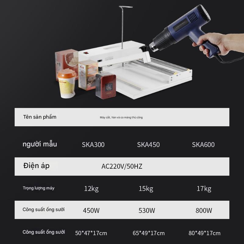 Tùy chọn: Có thể kết hợp với máy thổi nhiệt để làm co màng sau khi hàn cắt.